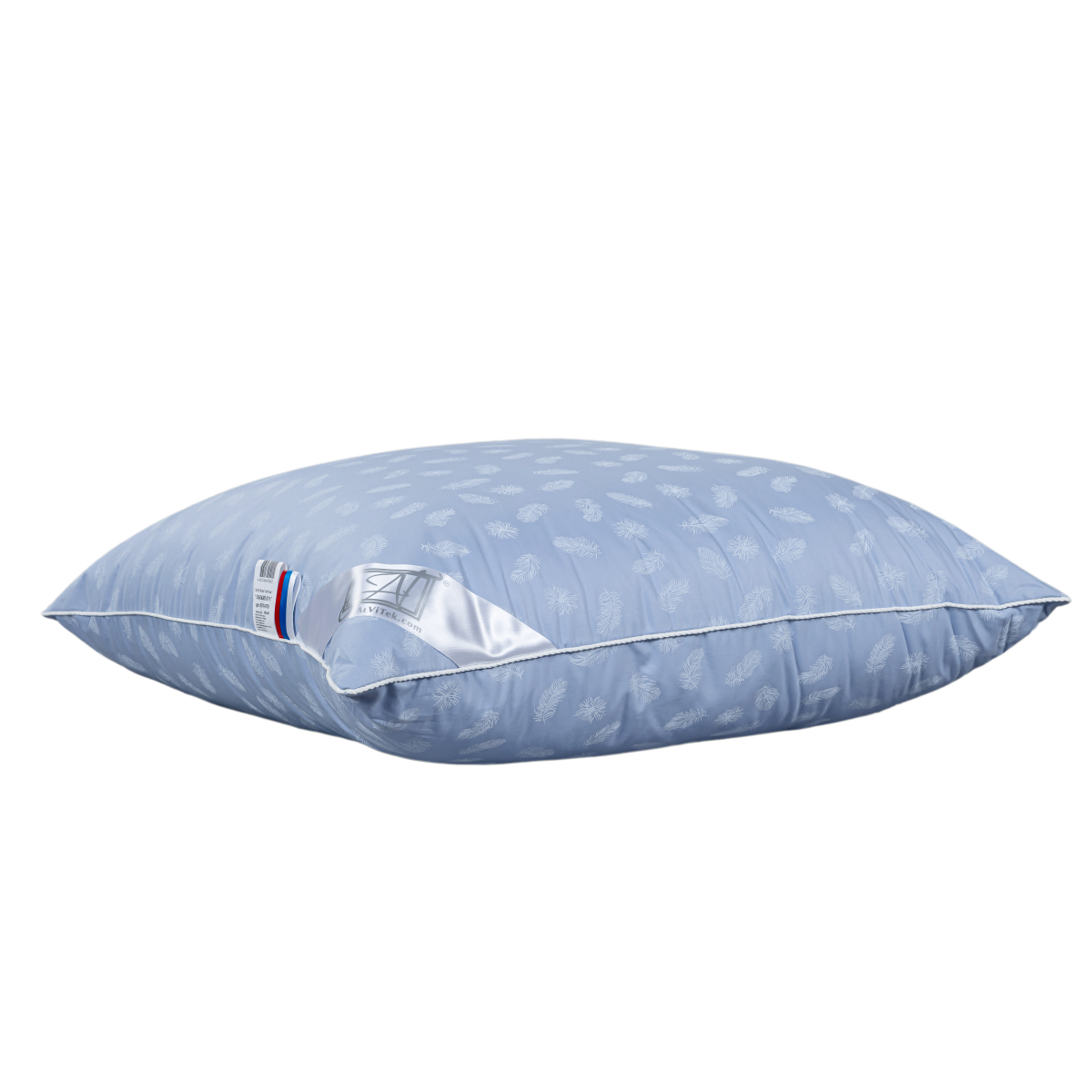 Молнияподушка чехол с молнией, ткань 100% хлопок- тик пуходержащий, наполнитель "Лебяжий пух" ( 1,2кг полое извитое высокосиликонизированное микроволокно), кант, уголок, бирка, фложок, постер, в сумке