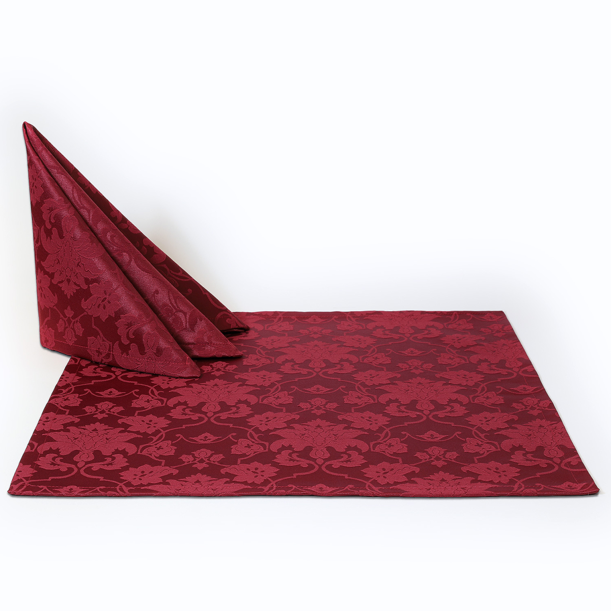 236Салфетки 40x40 см. цвет бордовый дизайн 1589 цветы изготовлены компанией Лайн Декор из проффессиональной скатертной ткани коллекции "Ричард", состав ткани 50% хлопок 50% п/э, плотность ткани составляет 236 г/м2. Данная коллекция ткани практически не дает усадку. Салфетки достаточно плотные и из них можно складывать различные фигурки. Ткань имеет пропитку от загрязнений, что существенно продлевает срок службы и облегчает уход за изделиями. Ощутите состояние благосостояния и богатства от элегантной сервировки стола этими красивыми салфетками