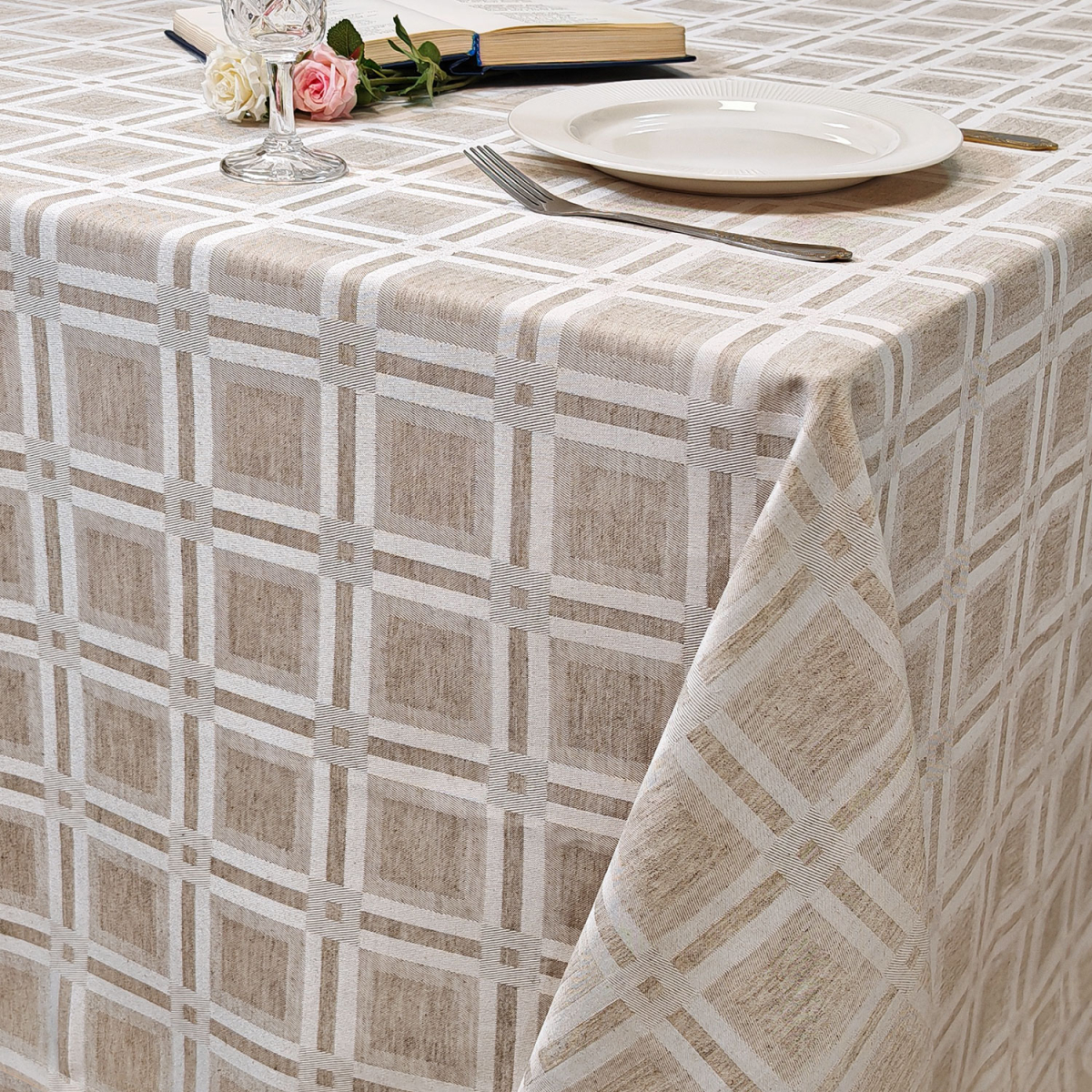 28% лён 72% п/эСкатерть 120x120 см., цвет натуральный лён, арт. ld-skat-square-2766-white-01 изготовлена компанией Лайн Декор, из профессиональной скатертной ткани коллекции Лён, состав ткани 28% лён 72% полиэстер, плотность ткани 236 г./м2. Эта ткань специально разрабатывалась фабрикой для ресторанов, кафе, гостиниц, что позволяет изделиям, сшитым из этой ткани выдерживать большое количество стирок без потери эксплуатационных свойств. Для окраса ткани используется стойкий краситель, который на протяжении всего срока службы сохраняет сочный, насыщенный цвет. С этой ткани легко отстирываются практически любые загрязнения. Ткань имеет водоотталкивающую пропитку и любые жидкости, пролитые на ткань, не впитываются в структуру волокон ткани, а как капельки ртути остаются на поверхности. Вам достаточно взять бумажную салфетки и удалить загрязнение. Данная пропитка сохраняет свои свойства на протяжении 25-30 циклов стирок, после этого периода, ее действие начнет ослабевать, но вы будете продолжать пользоваться изделиями, как и прежде. Обращаем ваше внимание на то, что скатерть поставляется не отглаженная и перед началом эксплуатации, рекомендуется ее отгладить утюгом, чтобы придать ей красивый внешний вид.